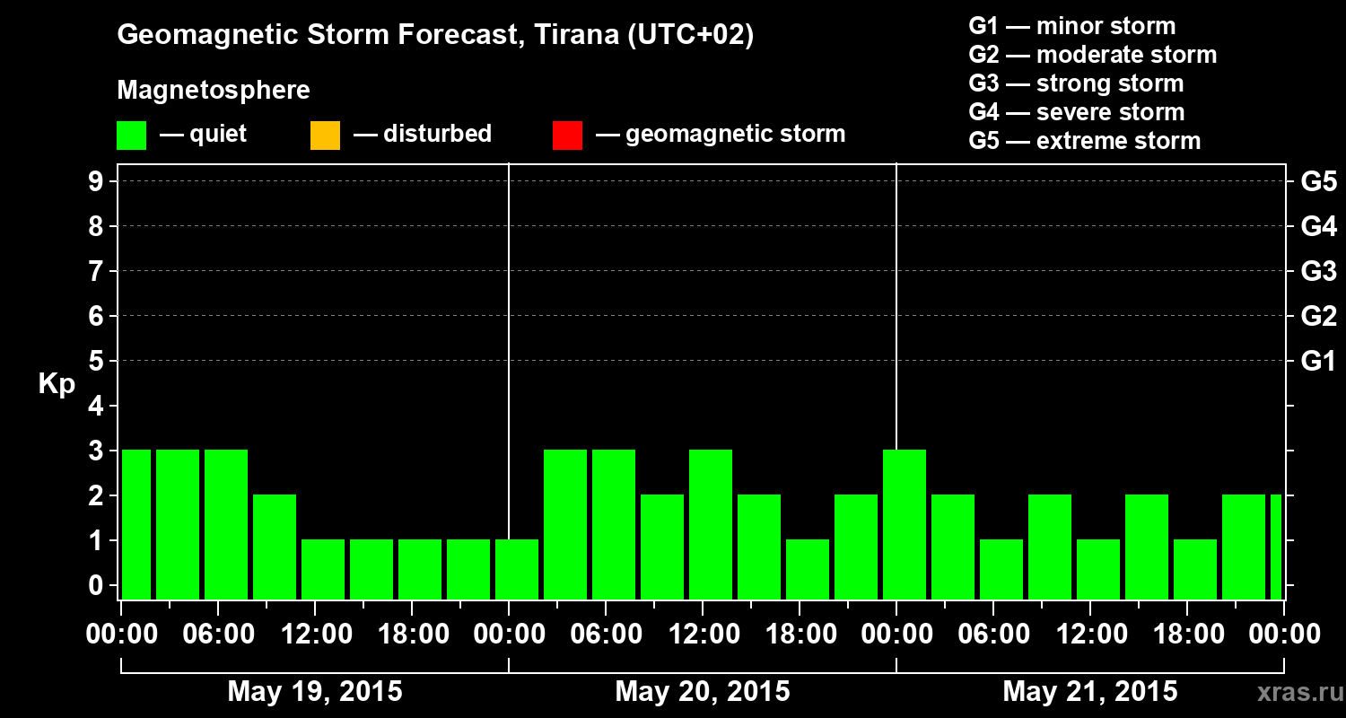 Geomagnetic storm forecast in Tirana for May 19, 2015
