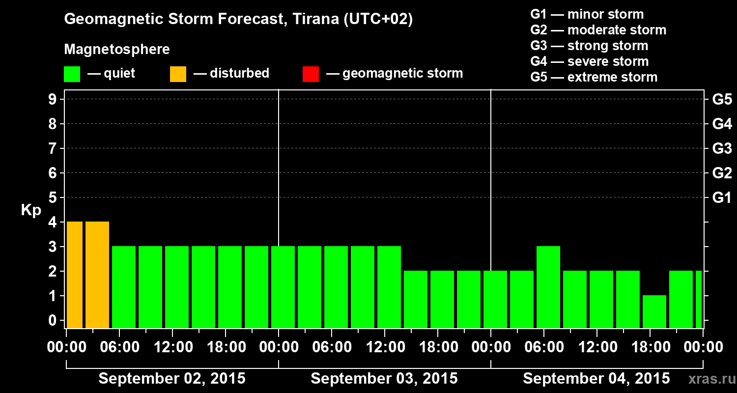 Geomagnetic storm forecast in Tirana for Sep 02, 2015