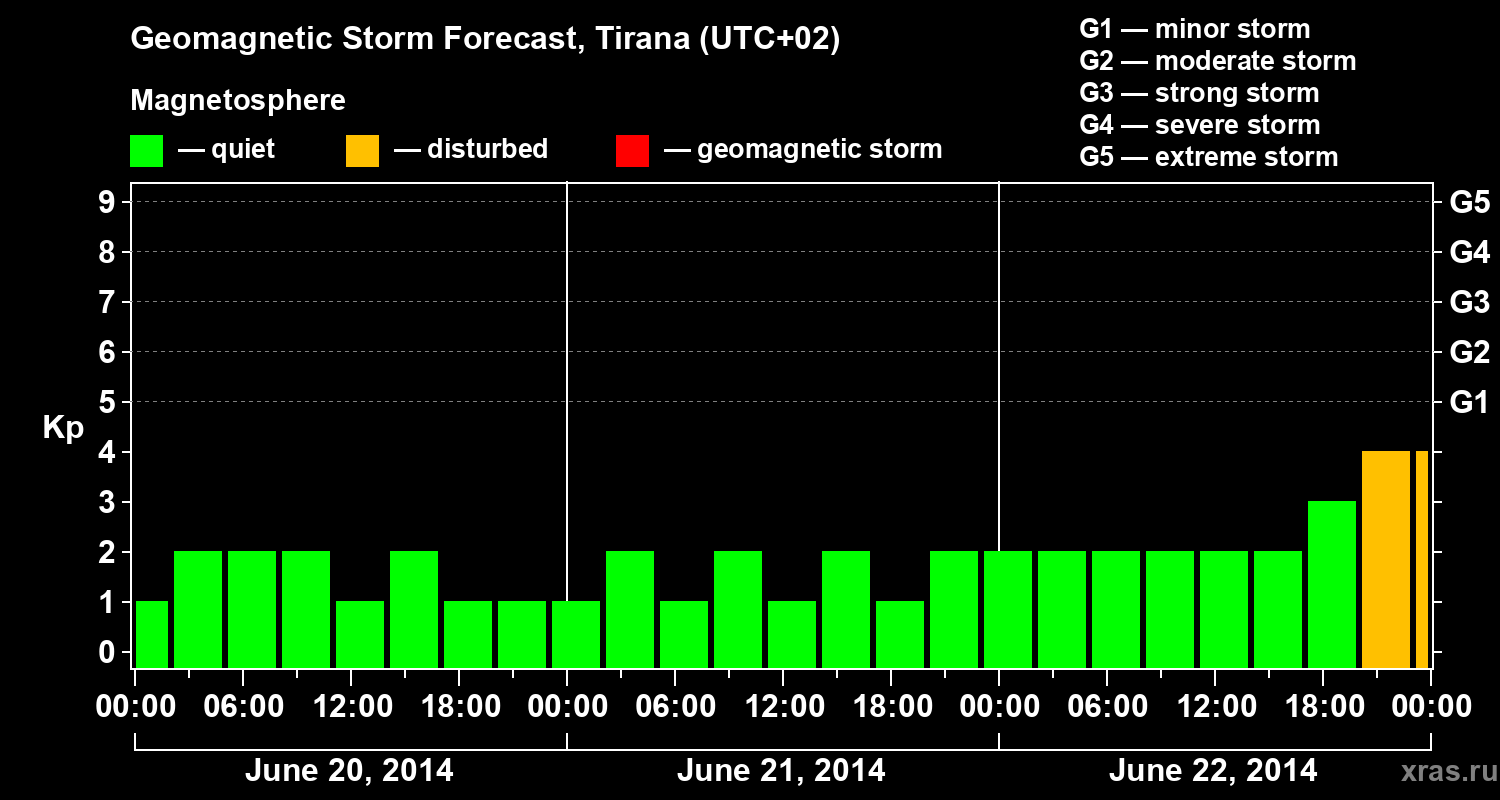 Geomagnetic storm forecast in Tirana for Jun 20, 2014