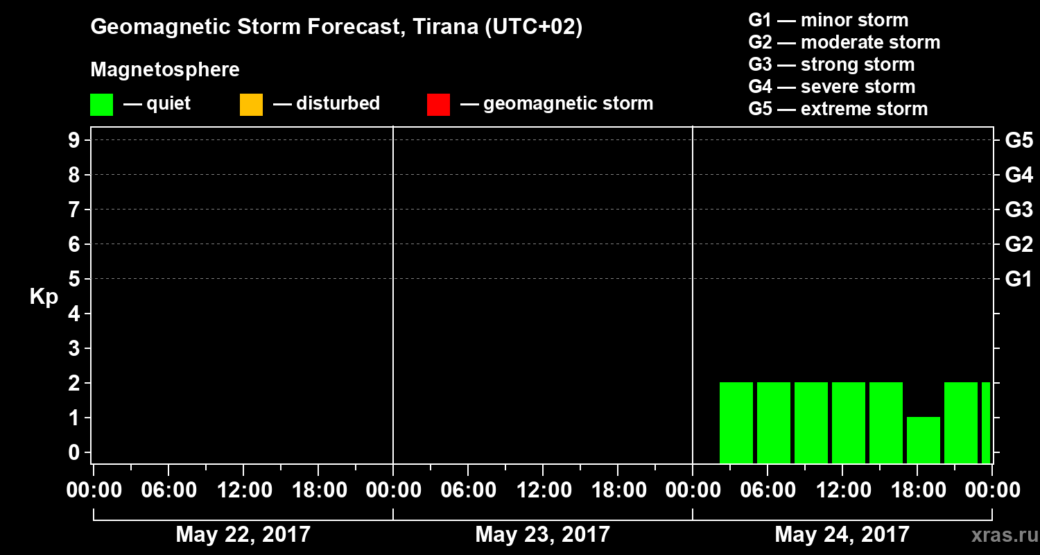 Geomagnetic storm forecast in Tirana for May 22, 2017