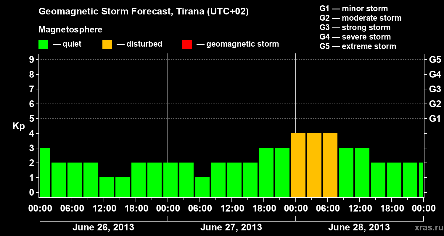 Geomagnetic storm forecast in Tirana for Jun 26, 2013