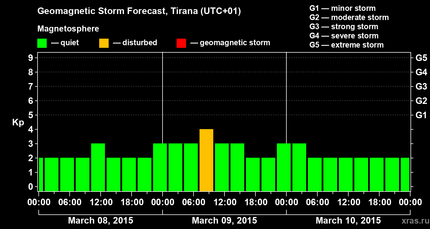 Geomagnetic storm forecast in Tirana for Mar 08, 2015