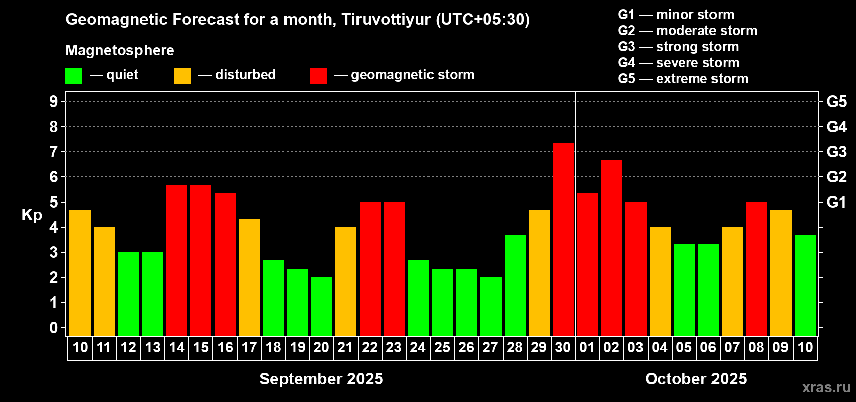 Geomagnetic storm forecast in Tiruvottiyur for Sep 10, 2025