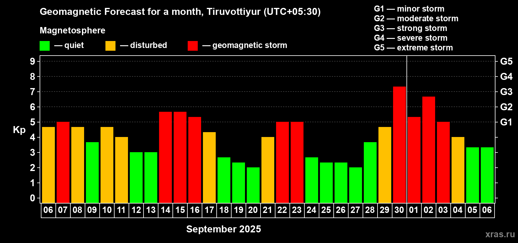 Geomagnetic storm forecast in Tiruvottiyur for Sep 06, 2025