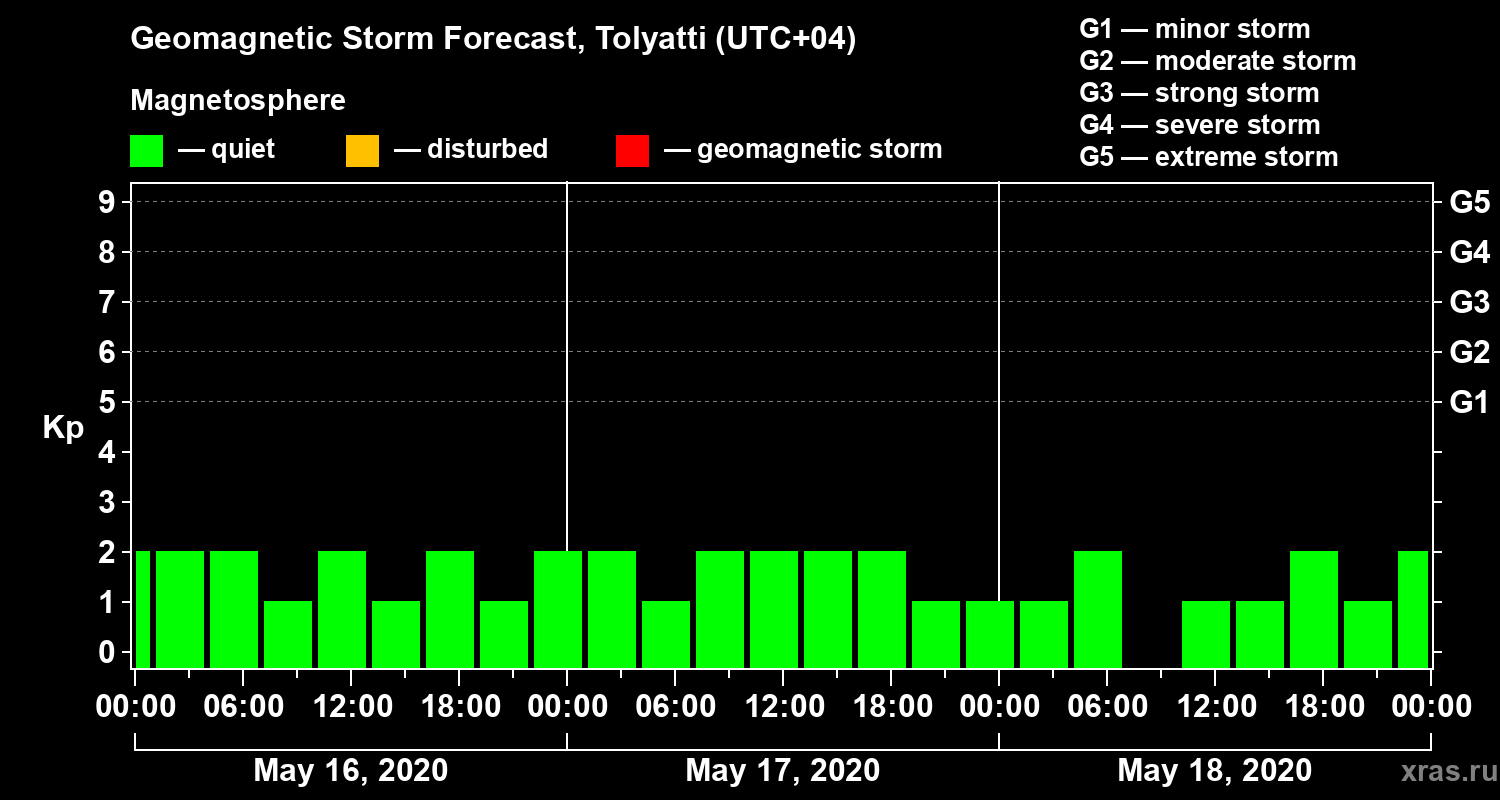 Geomagnetic activity forecast in Tolyatti — May 16, 2020