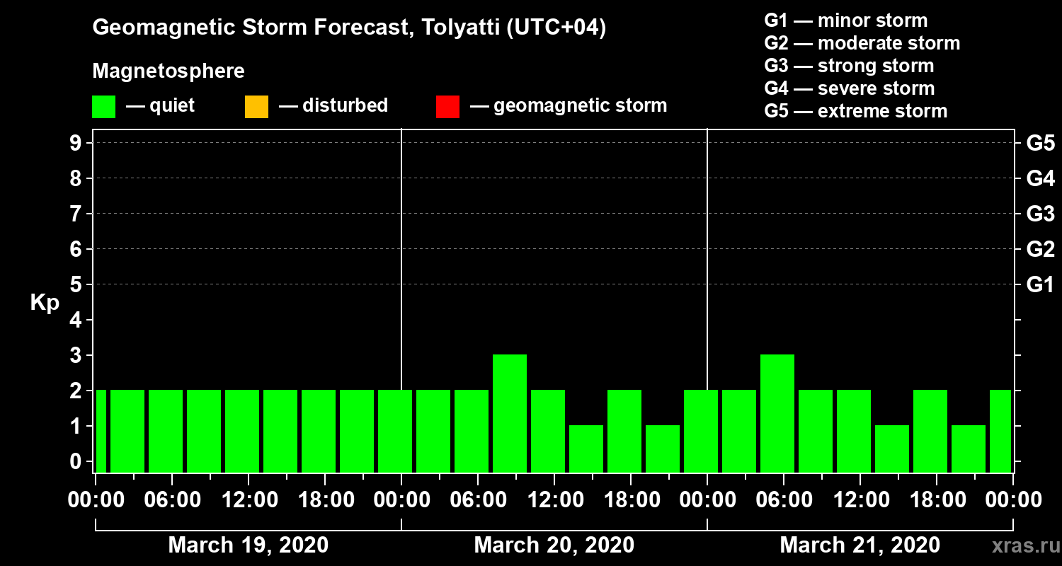 Geomagnetic activity forecast in Tolyatti — Mar 19, 2020