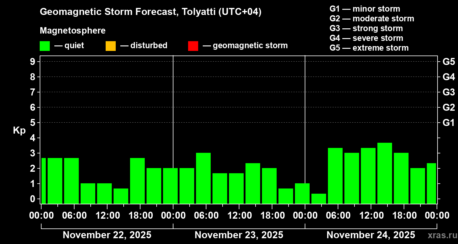 Geomagnetic storm forecast in Tolyatti for Nov 22, 2025