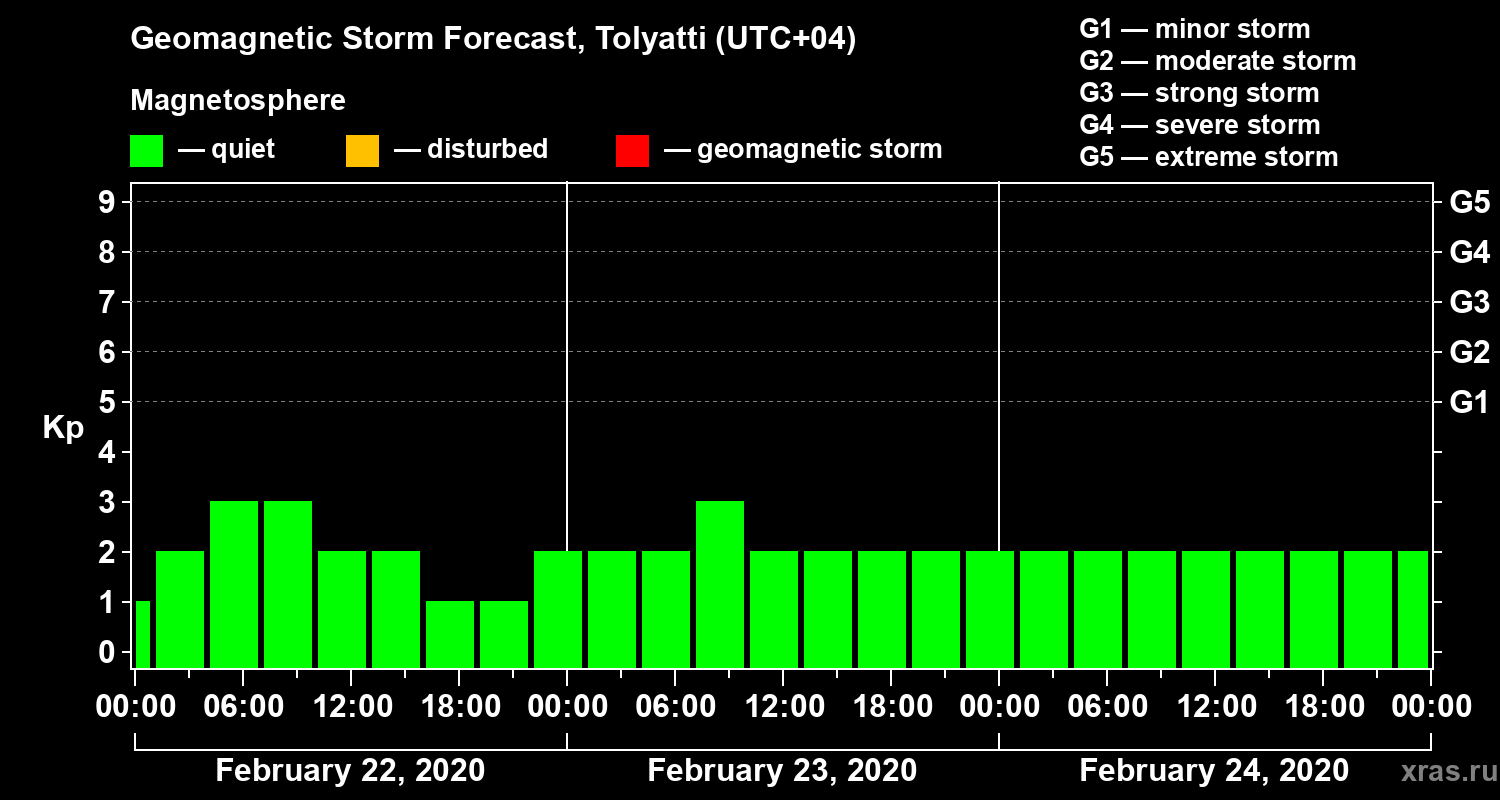 Geomagnetic activity forecast in Tolyatti — Feb 22, 2020