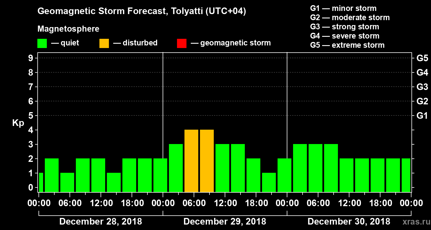 Geomagnetic activity forecast in Tolyatti — Dec 28, 2018