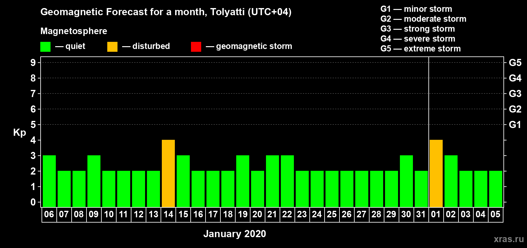 Geomagnetic activity forecast in Tolyatti — Jan 06, 2020