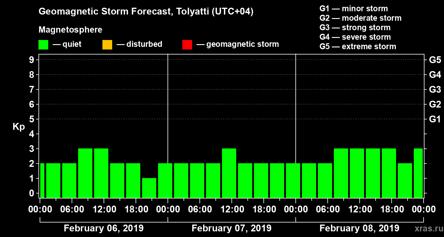 Geomagnetic storm forecast in Tolyatti for Feb 06, 2019