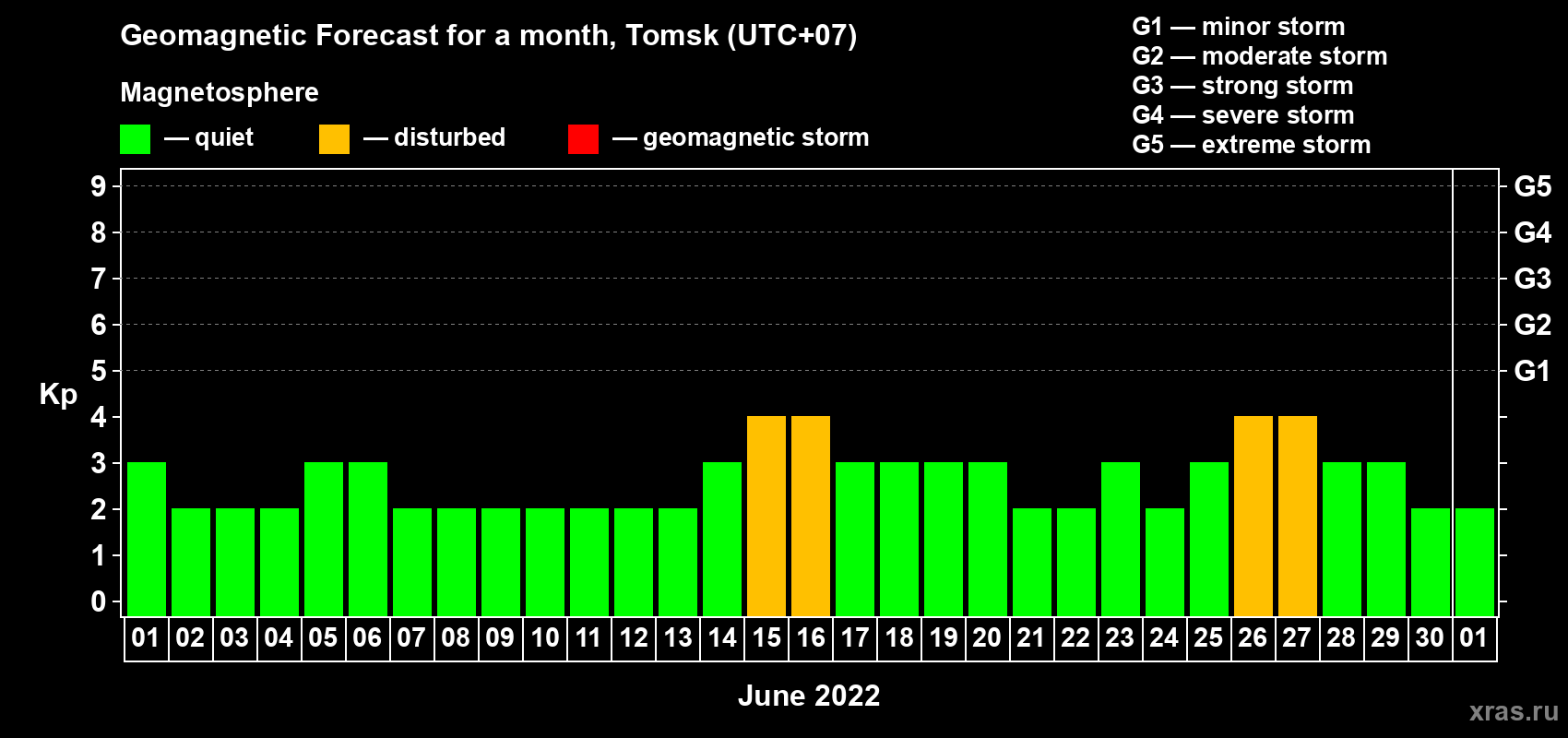 Geomagnetic activity forecast in Tomsk — Jun 01, 2022