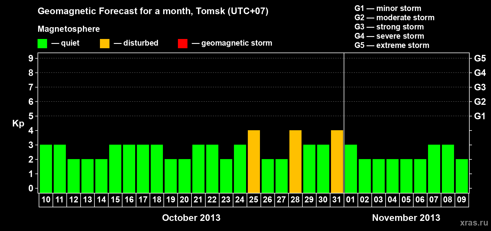 Geomagnetic storm forecast in Tomsk for Oct 10, 2013
