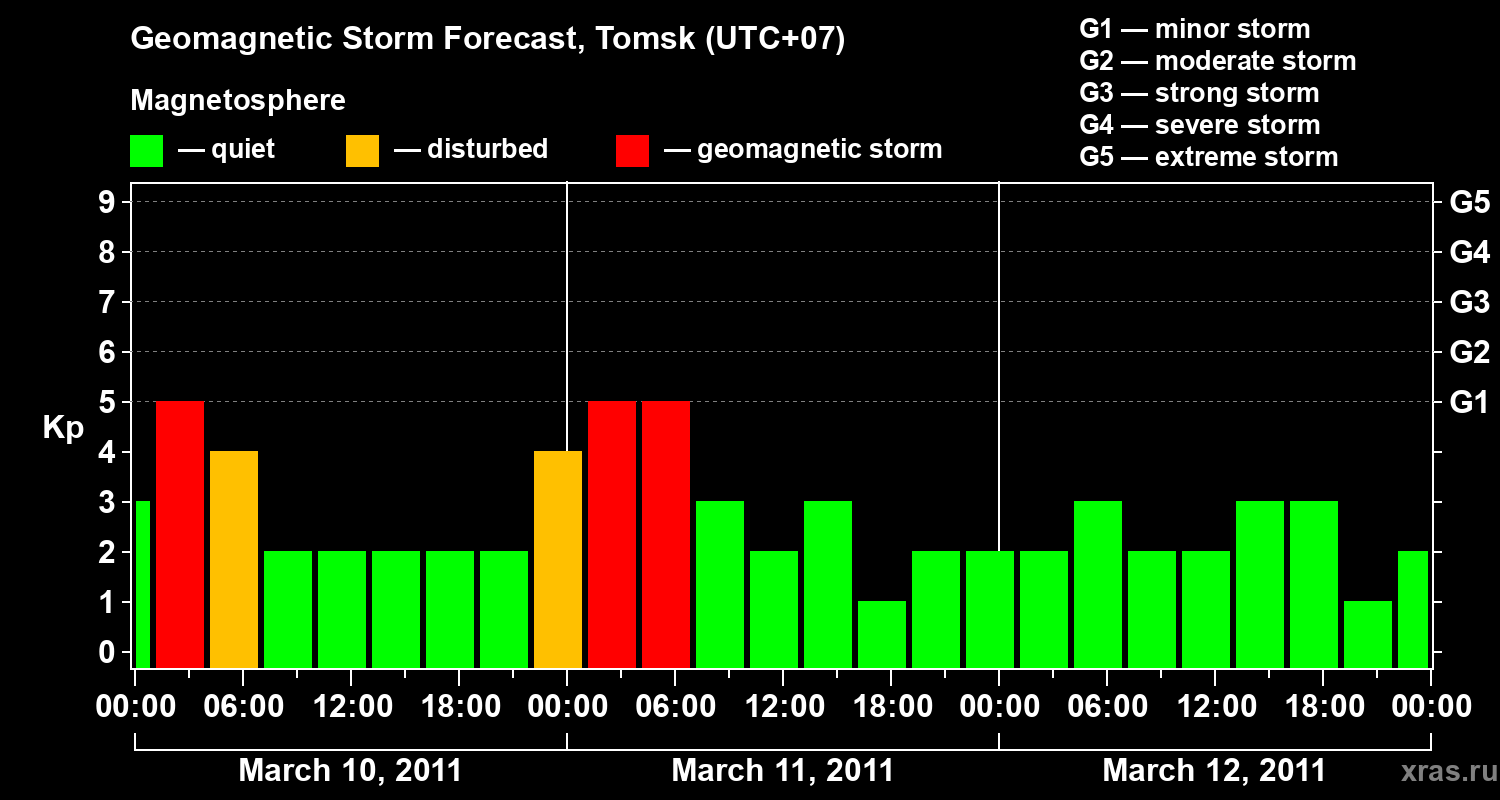 Geomagnetic storm forecast in Tomsk for Mar 10, 2011