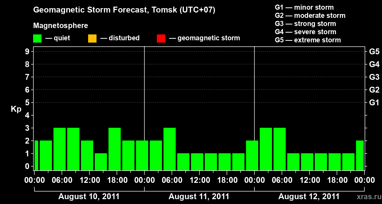 Geomagnetic storm forecast in Tomsk for Aug 10, 2011