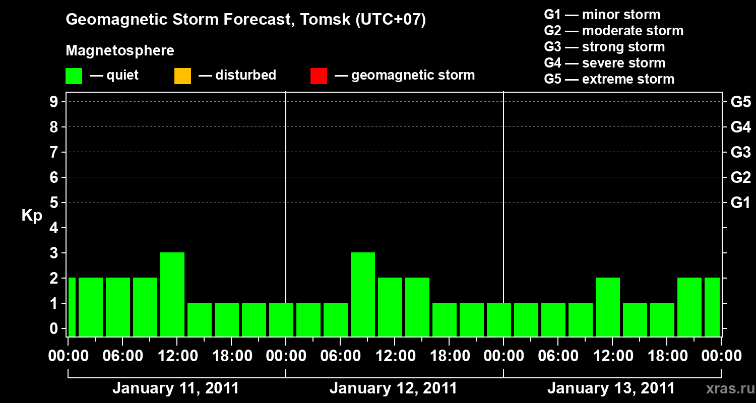 Geomagnetic storm forecast in Tomsk for Jan 11, 2011