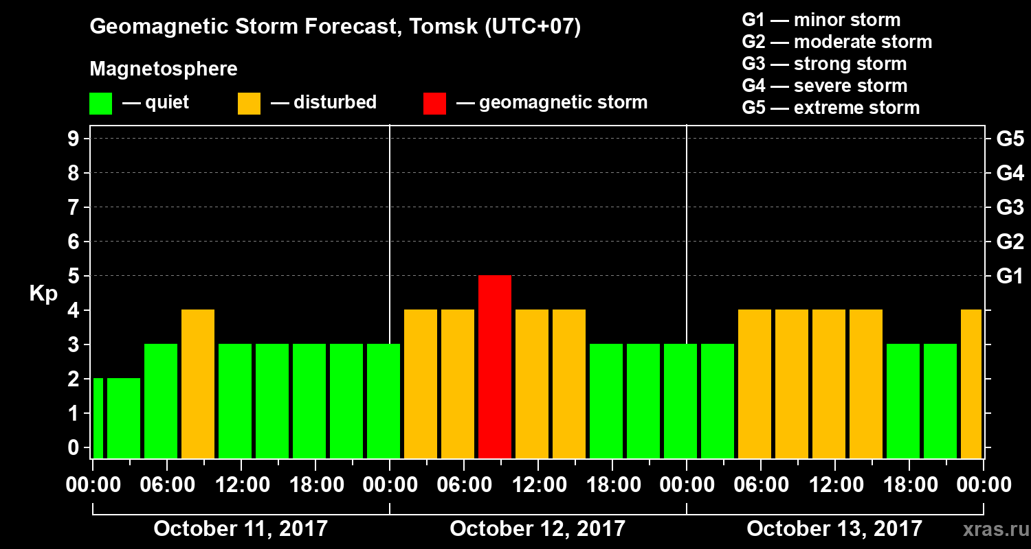 Geomagnetic storm forecast in Tomsk for Oct 11, 2017