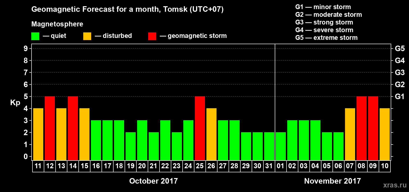 Geomagnetic activity forecast in Tomsk — Oct 11, 2017