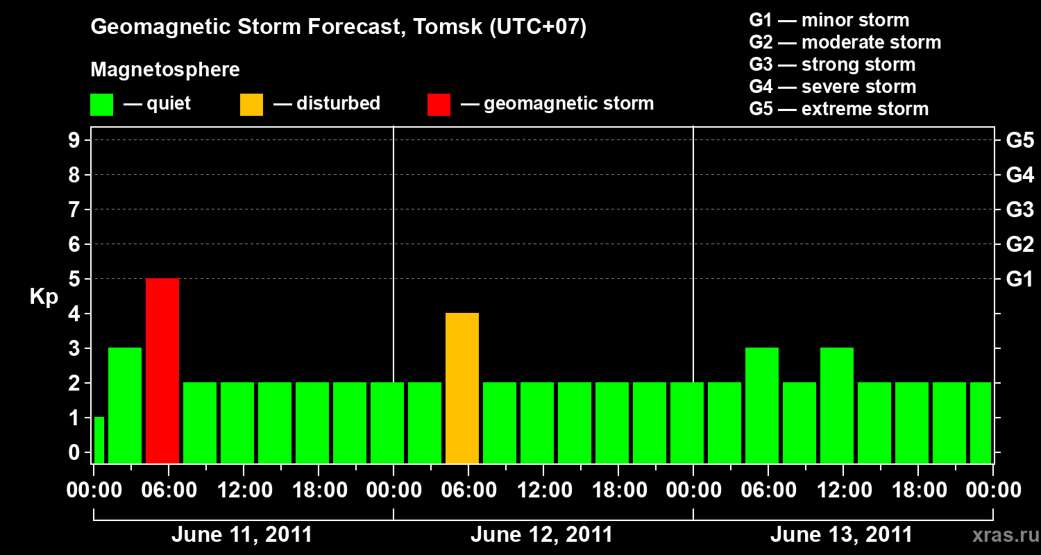 Geomagnetic storm forecast in Tomsk for Jun 11, 2011