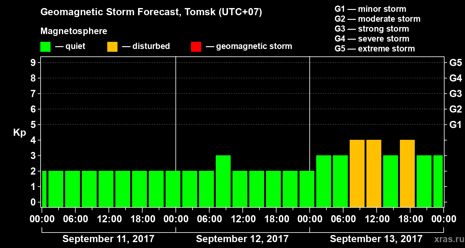 Geomagnetic storm forecast in Tomsk for Sep 11, 2017