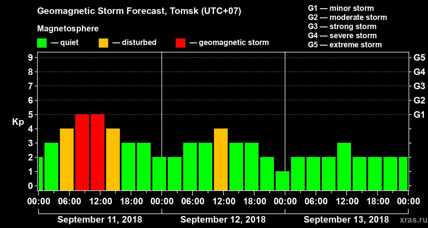Geomagnetic storm forecast in Tomsk for Sep 11, 2018
