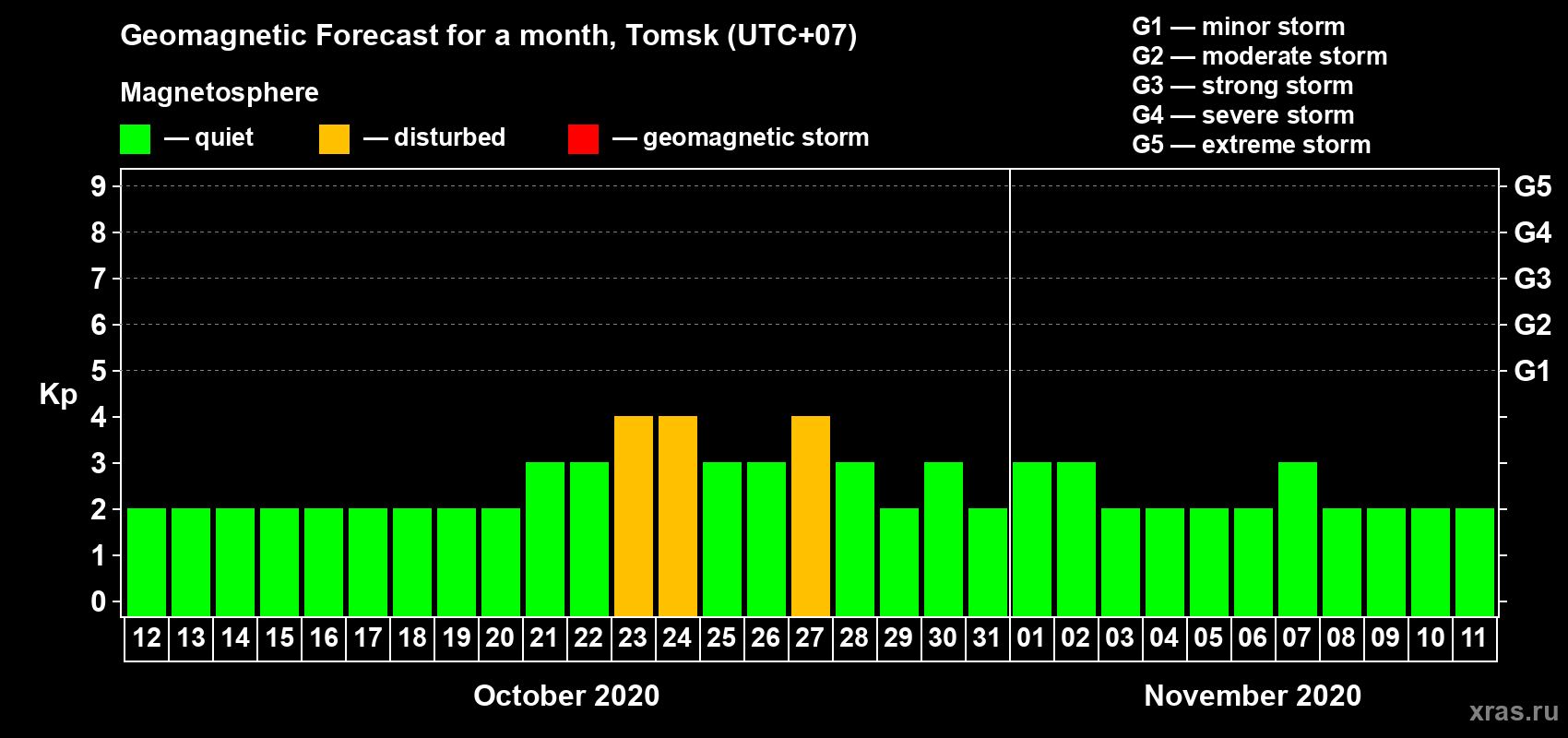 Geomagnetic activity forecast in Tomsk — Oct 12, 2020