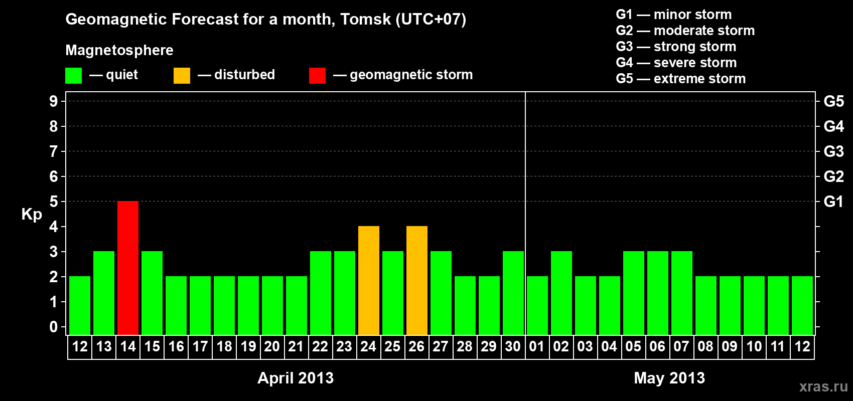 Geomagnetic activity forecast in Tomsk — Apr 12, 2013