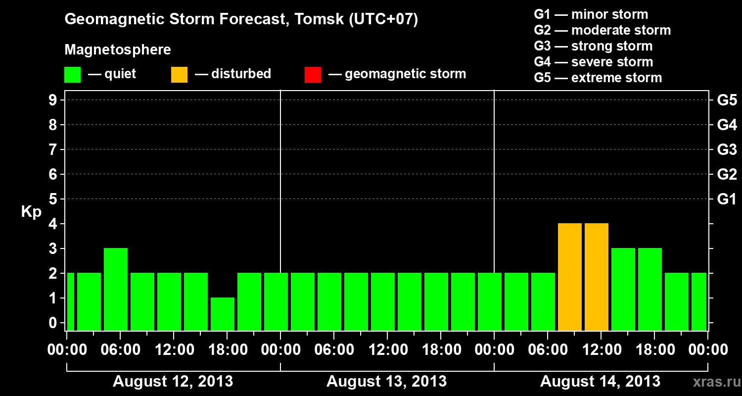 Geomagnetic storm forecast in Tomsk for Aug 12, 2013