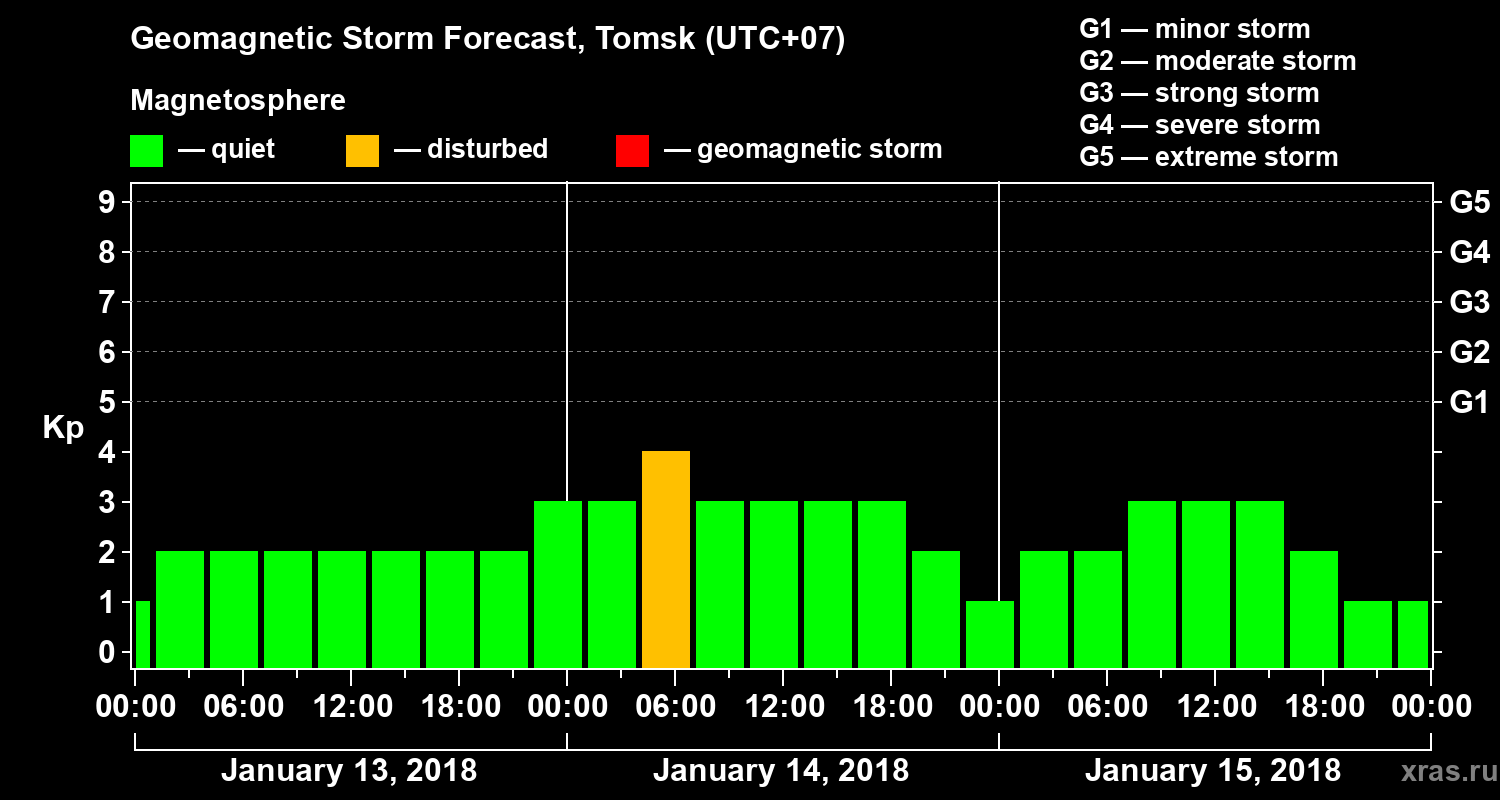 Geomagnetic storm forecast in Tomsk for Jan 13, 2018