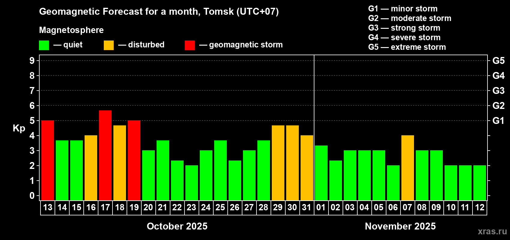 Geomagnetic storm forecast in Tomsk for Oct 13, 2025