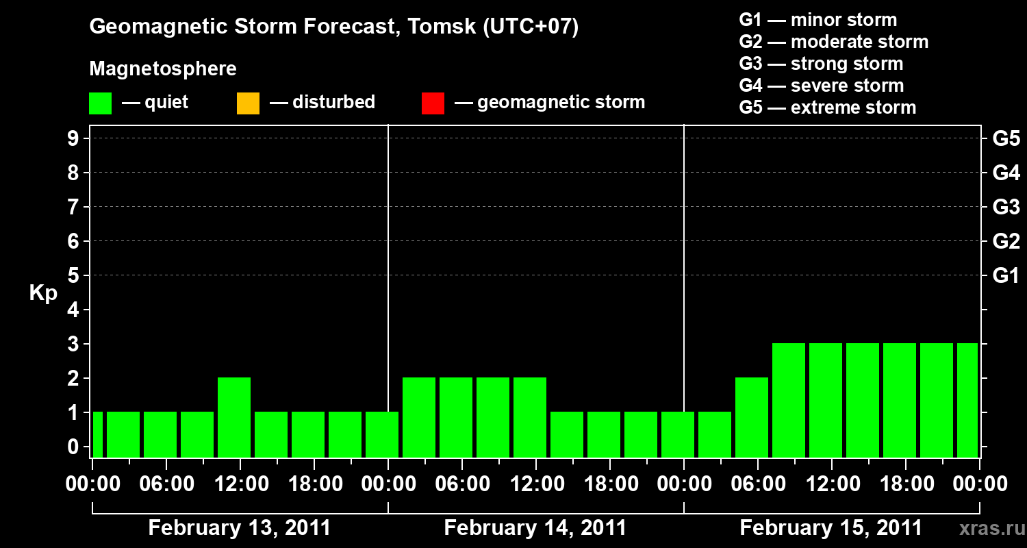 Geomagnetic storm forecast in Tomsk for Feb 13, 2011