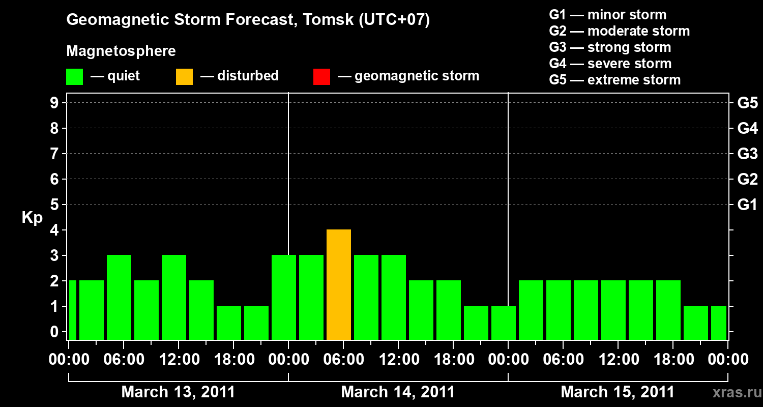 Geomagnetic storm forecast in Tomsk for Mar 13, 2011