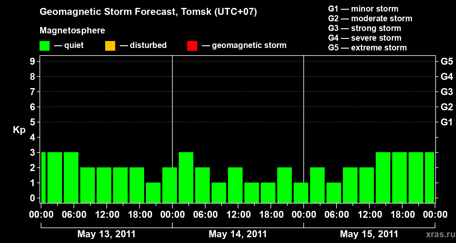 Geomagnetic activity forecast in Tomsk — May 13, 2011