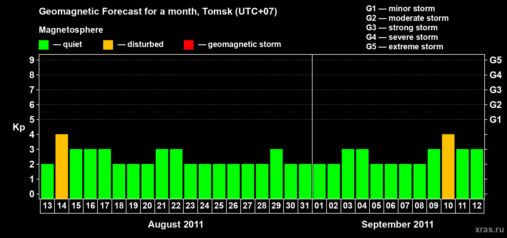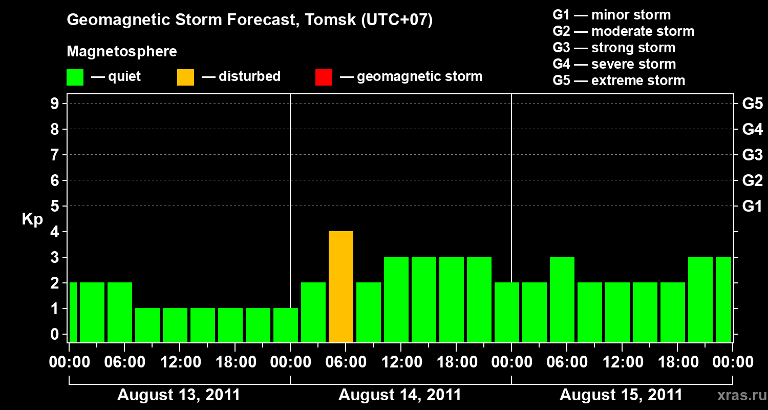 Geomagnetic storm forecast in Tomsk for Aug 13, 2011