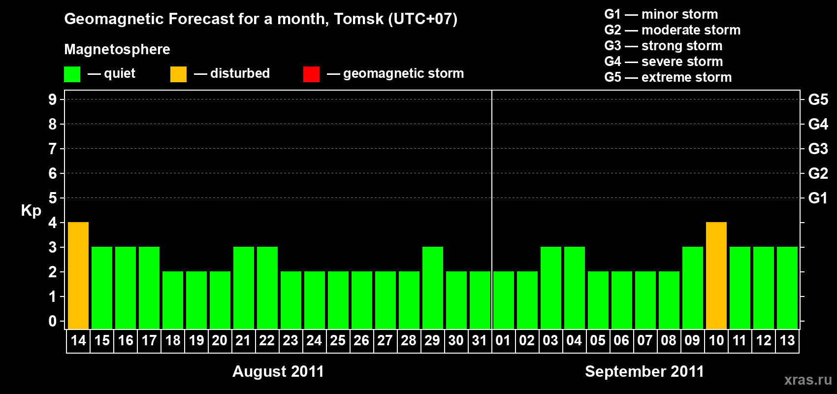 Geomagnetic storm forecast in Tomsk for Aug 14, 2011