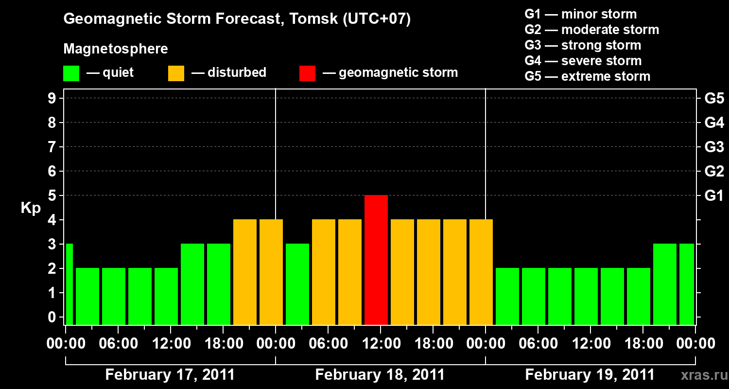 Geomagnetic storm forecast in Tomsk for Feb 17, 2011
