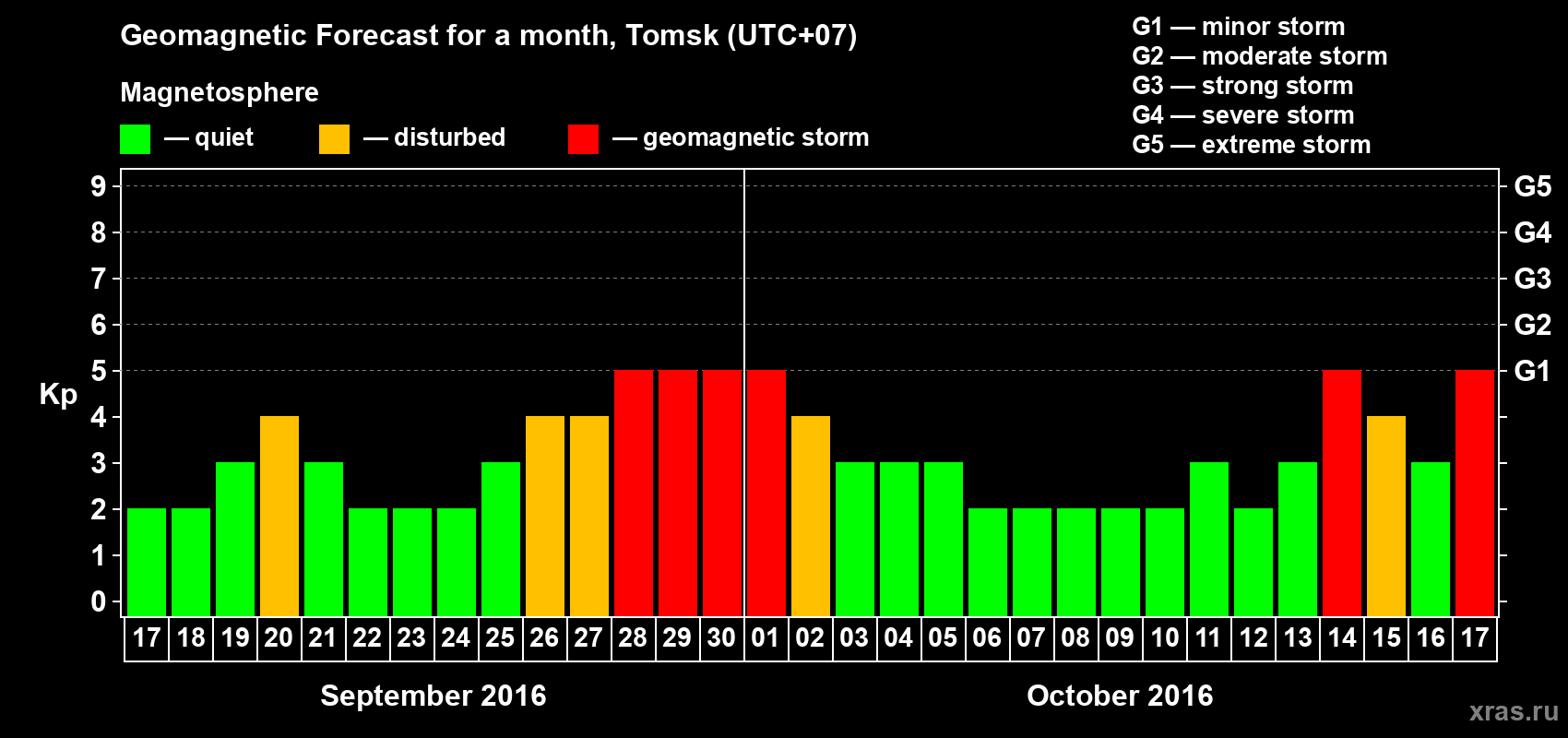 Geomagnetic storm forecast in Tomsk for Sep 17, 2016