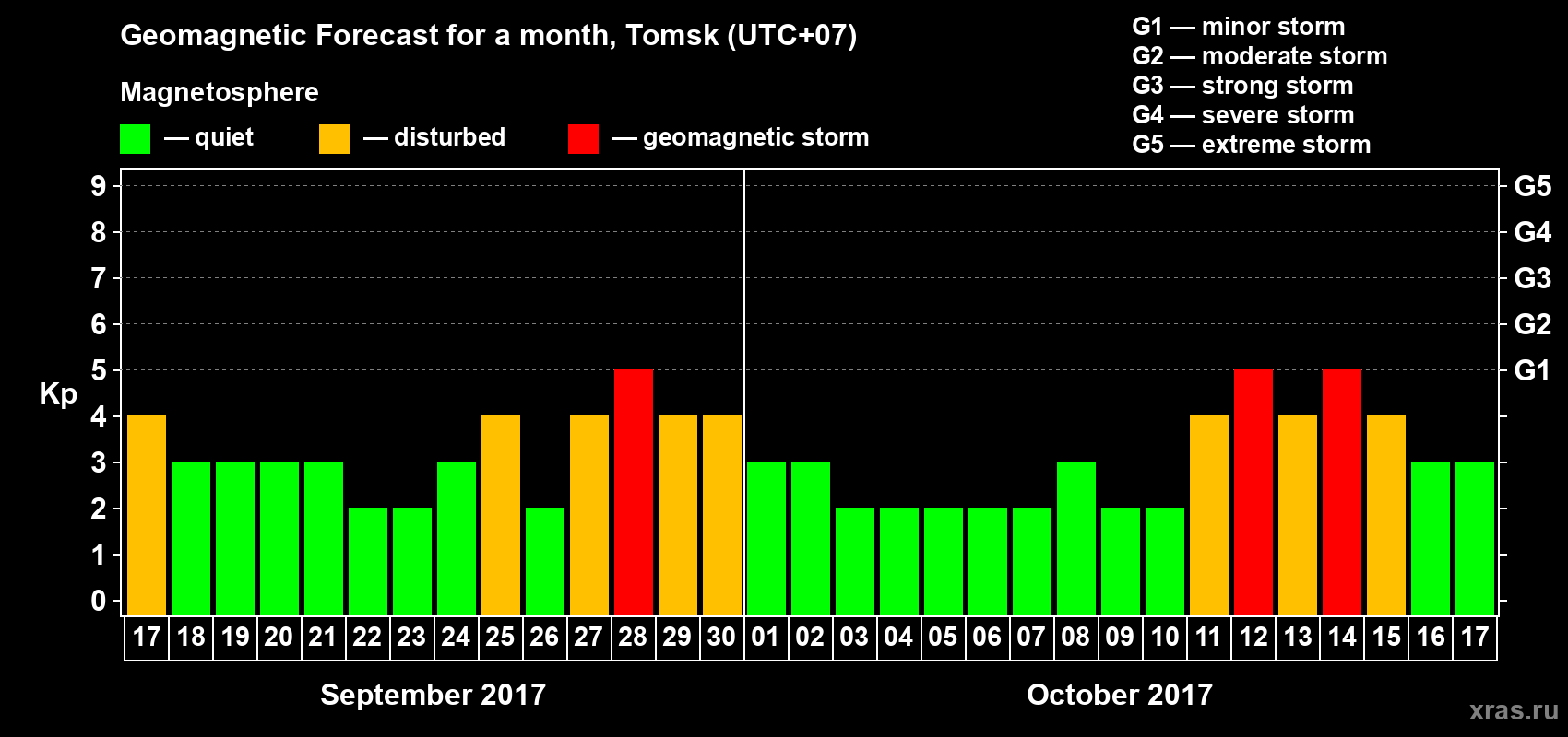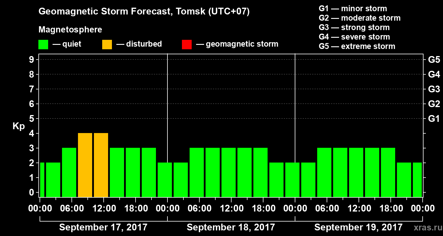 Geomagnetic storm forecast in Tomsk for Sep 17, 2017