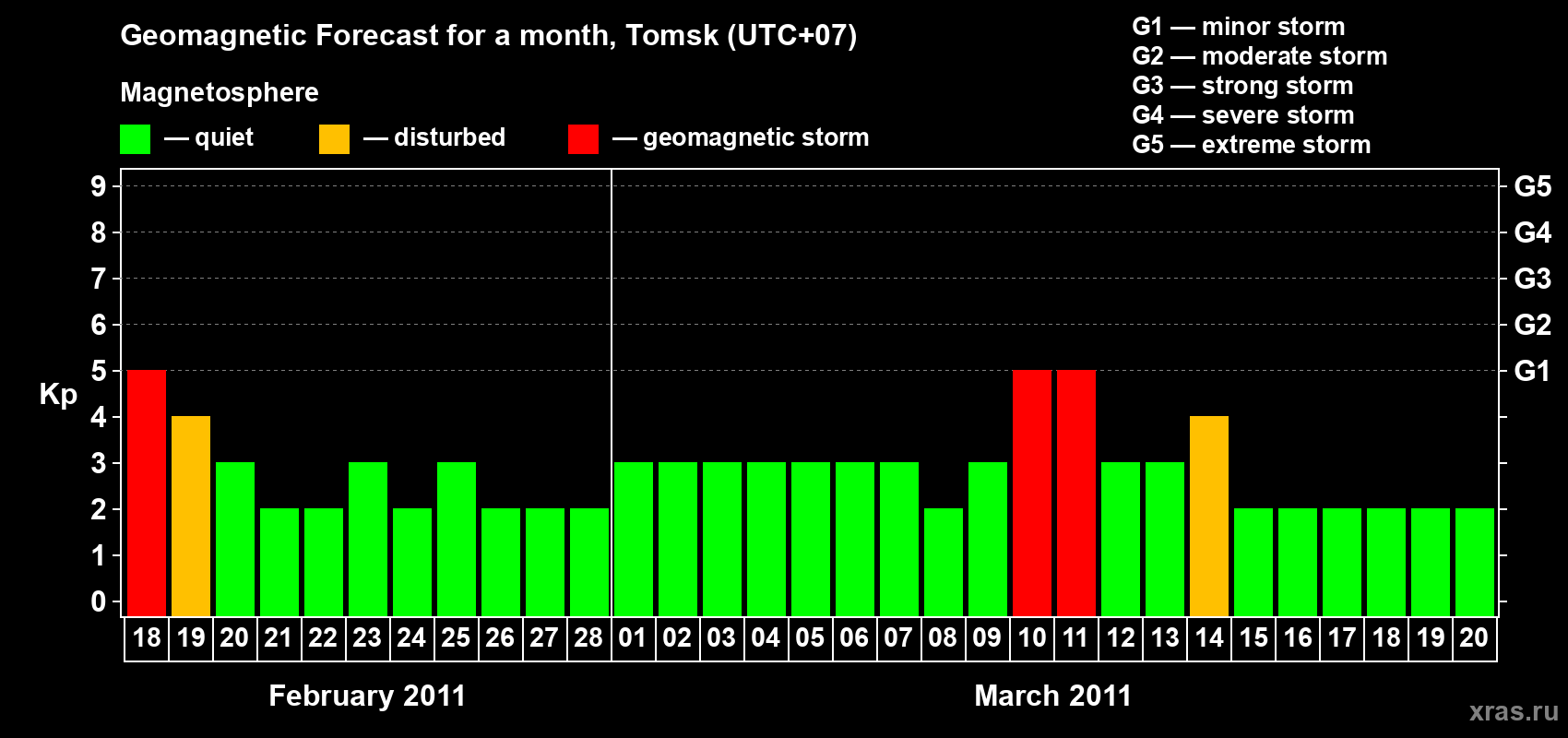 Geomagnetic storm forecast in Tomsk for Feb 18, 2011