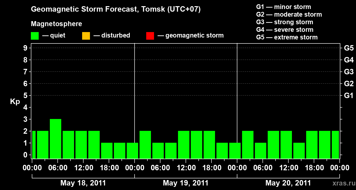 Geomagnetic activity forecast in Tomsk — May 18, 2011