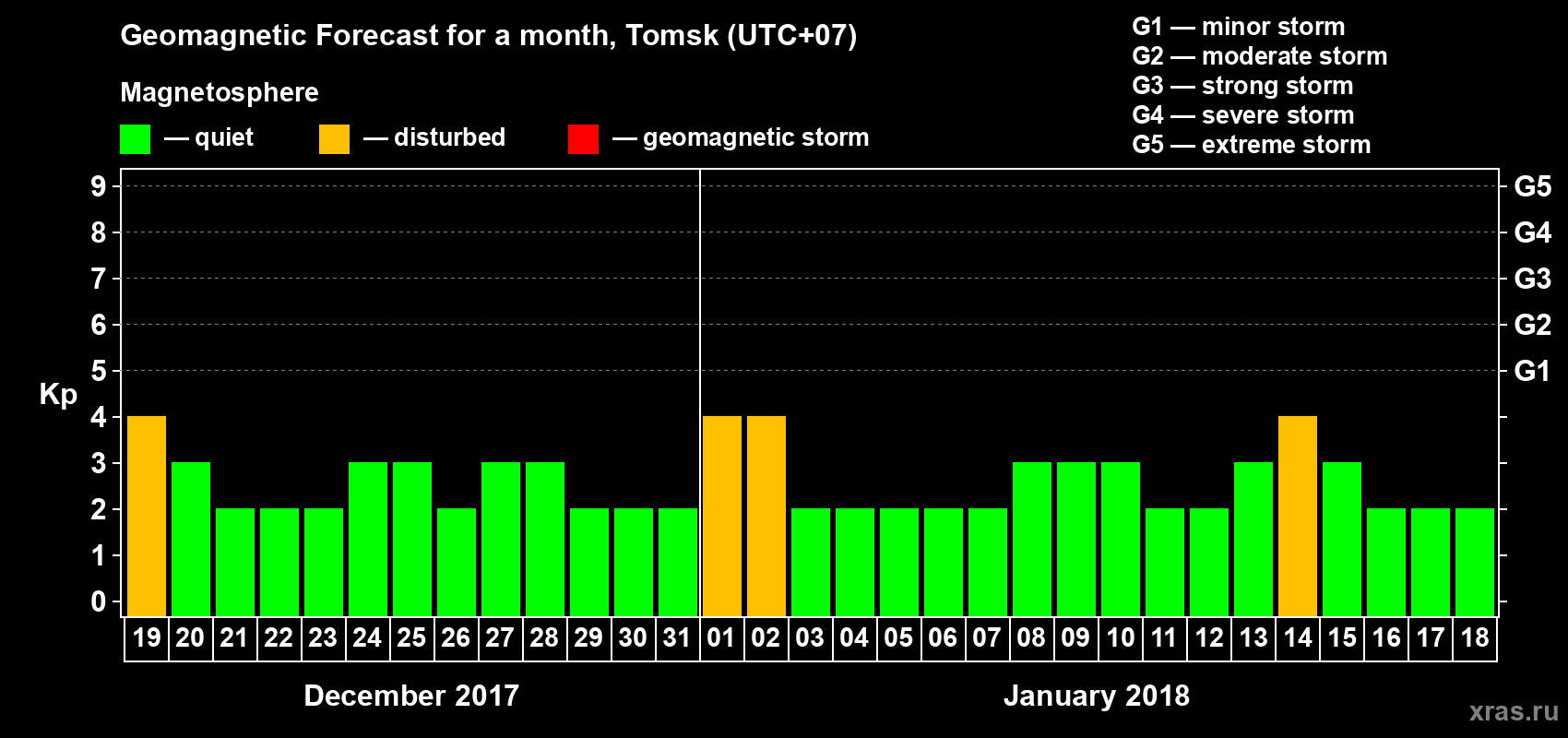 Geomagnetic activity forecast in Tomsk — Dec 19, 2017