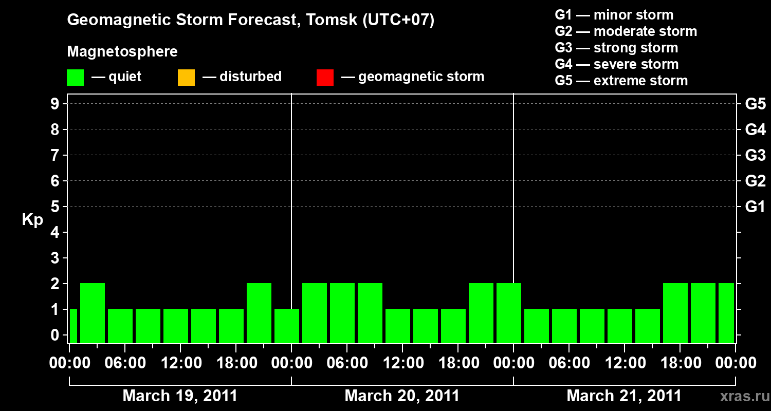 Geomagnetic activity forecast in Tomsk — Mar 19, 2011