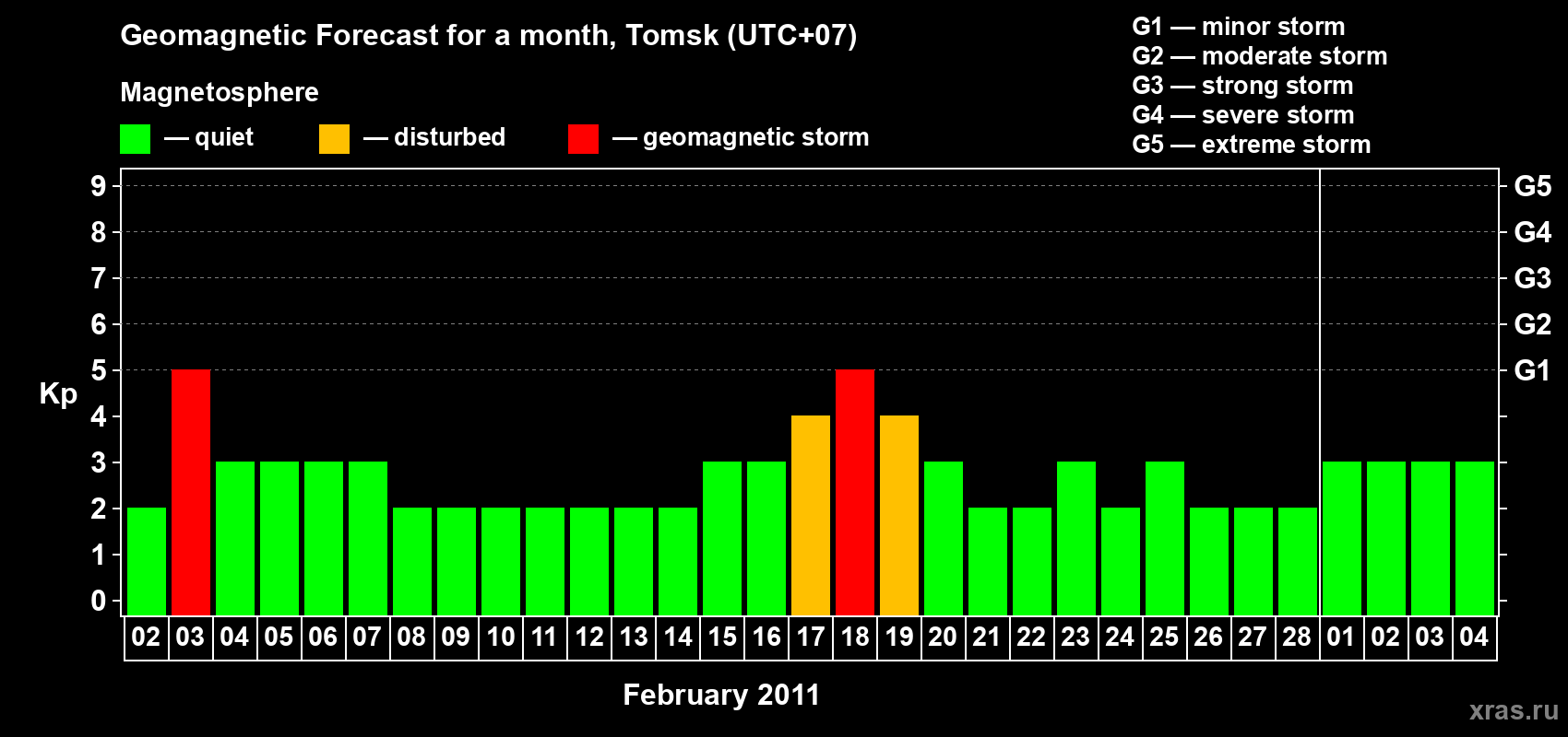 Geomagnetic activity forecast in Tomsk — Feb 02, 2011