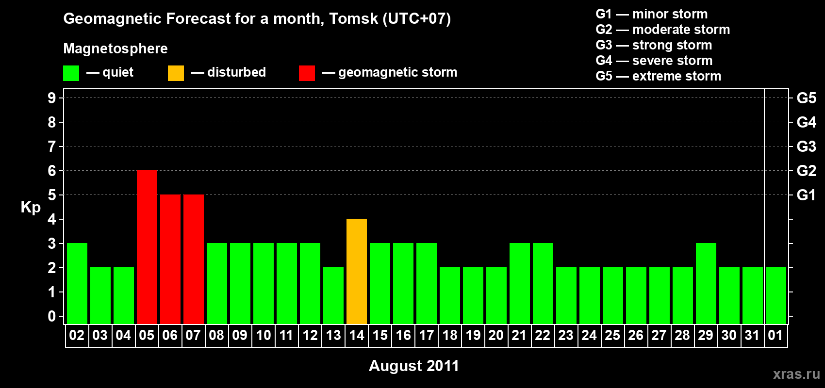 Geomagnetic storm forecast in Tomsk for Aug 02, 2011