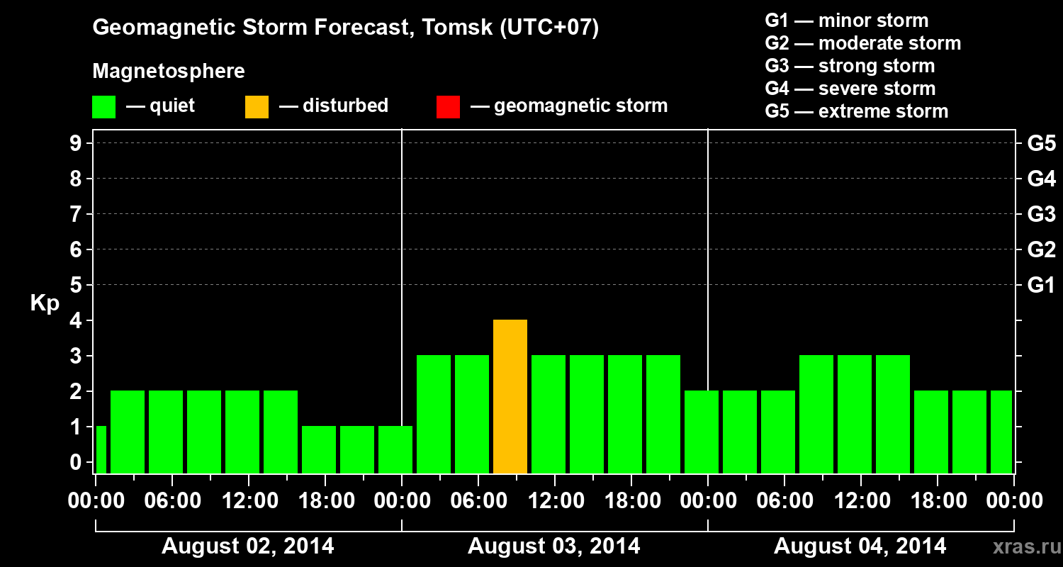 Geomagnetic storm forecast in Tomsk for Aug 02, 2014