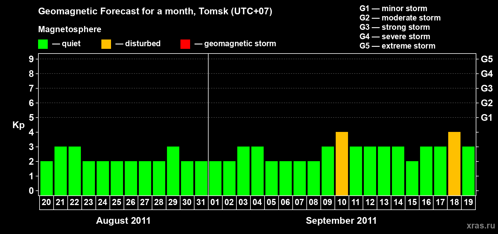 Geomagnetic storm forecast in Tomsk for Aug 20, 2011