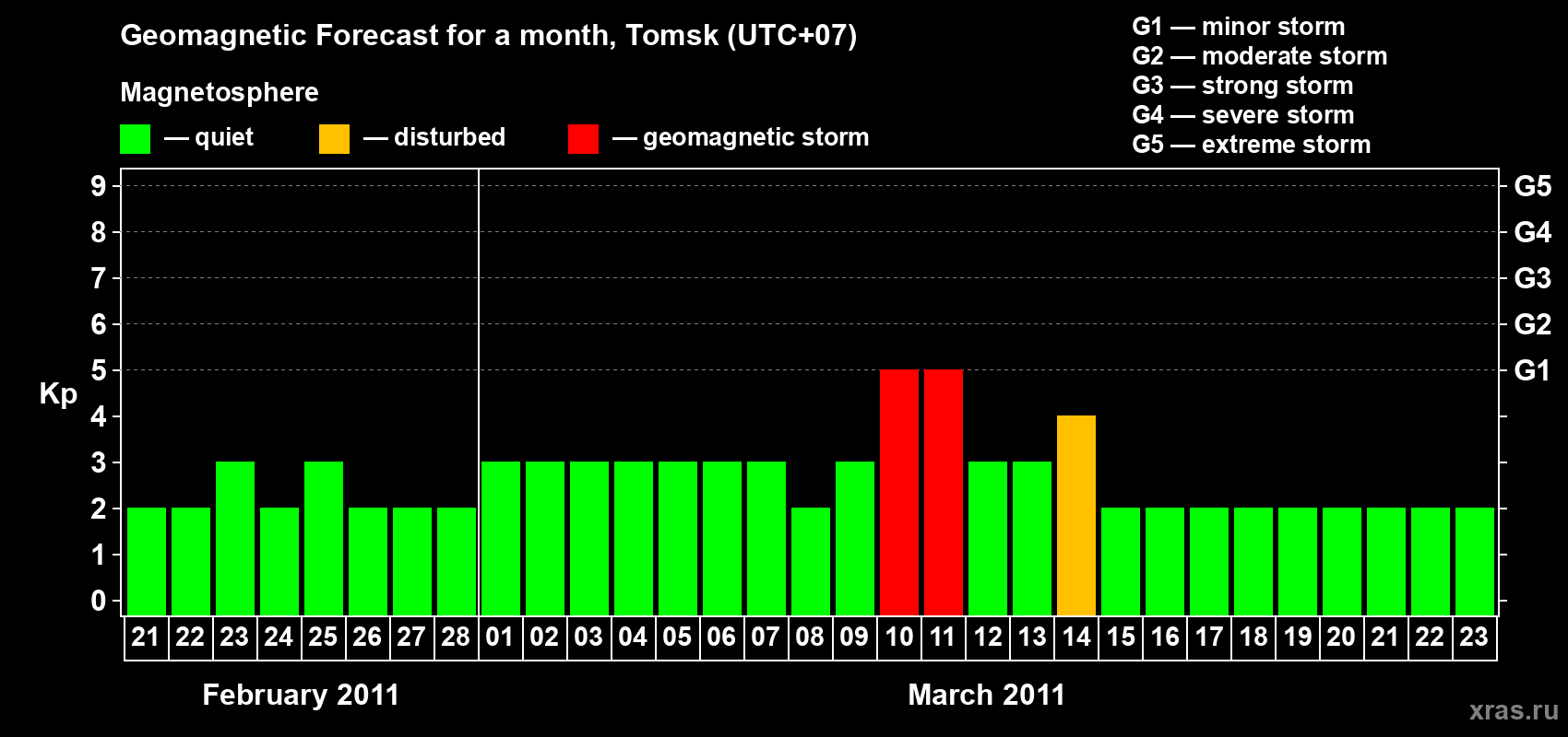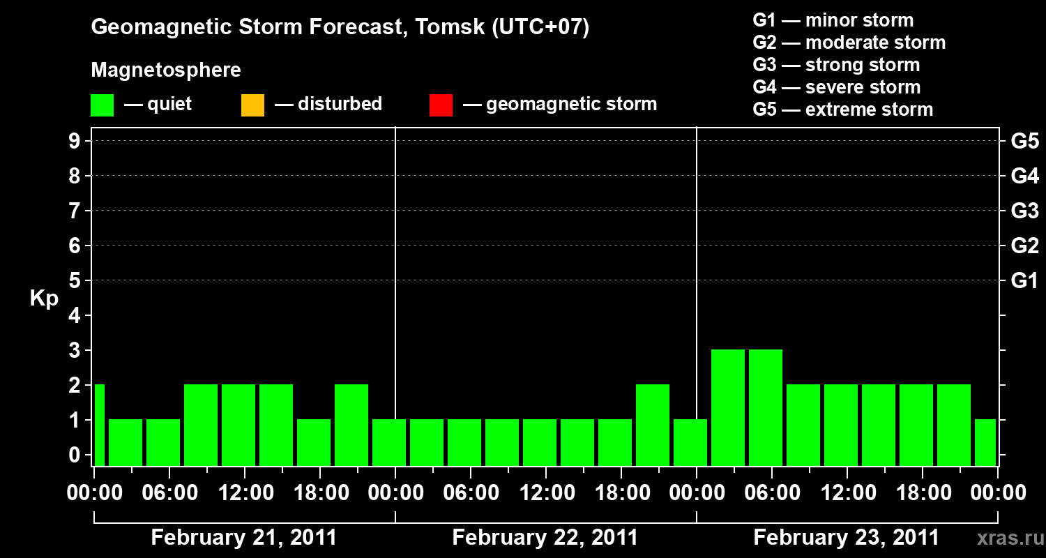 Geomagnetic storm forecast in Tomsk for Feb 21, 2011