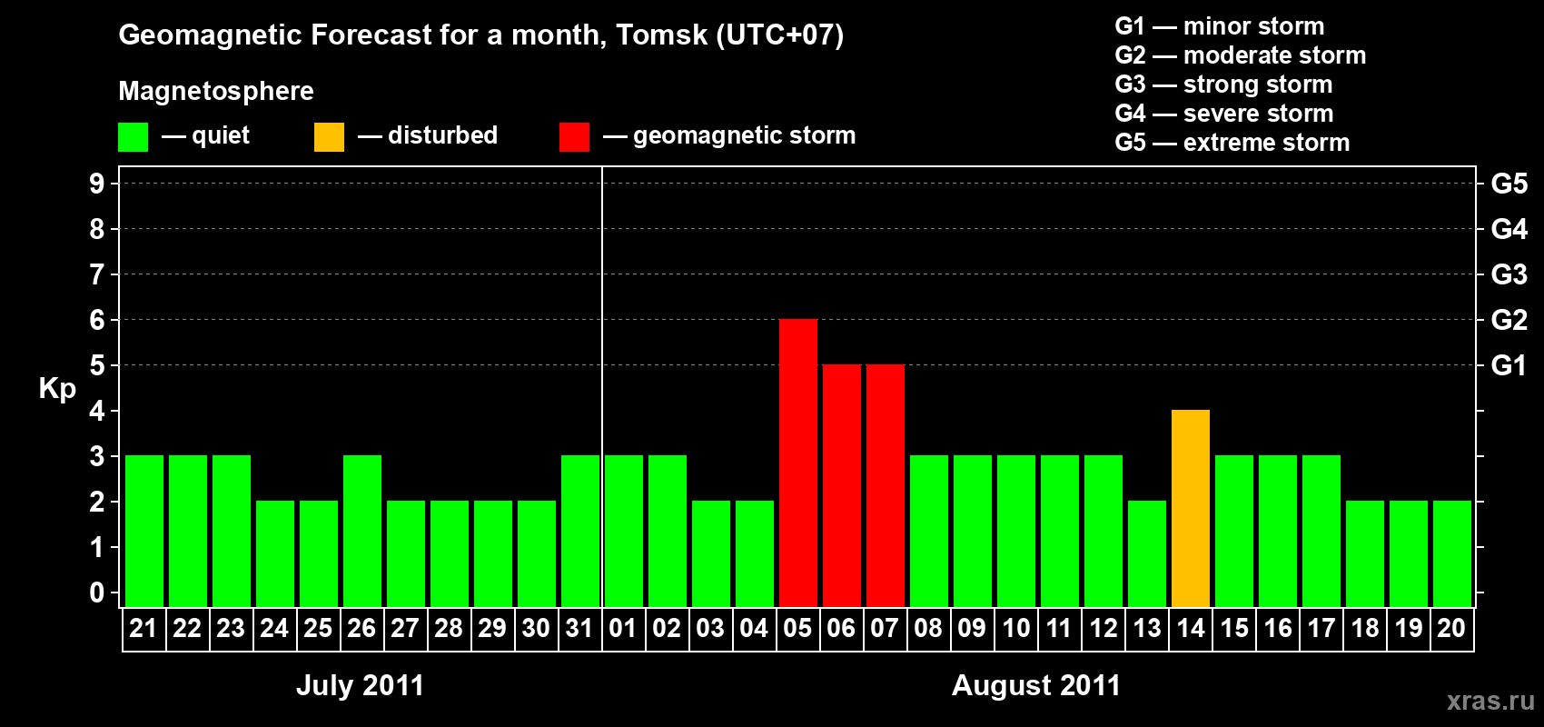 Geomagnetic storm forecast in Tomsk for Jul 21, 2011