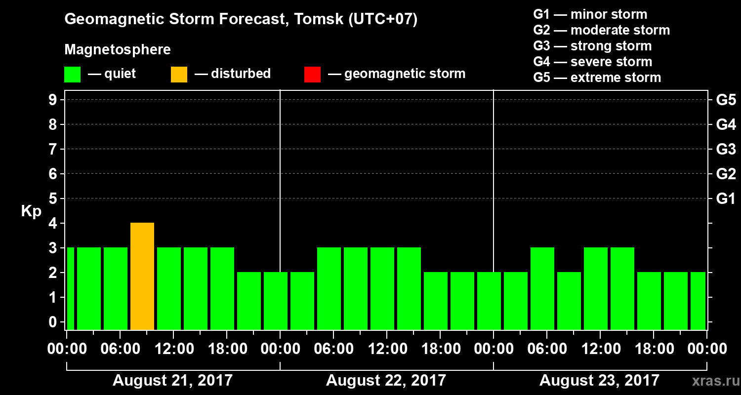 Geomagnetic storm forecast in Tomsk for Aug 21, 2017
