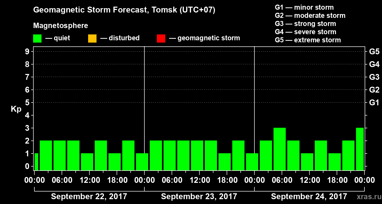 Geomagnetic storm forecast in Tomsk for Sep 22, 2017